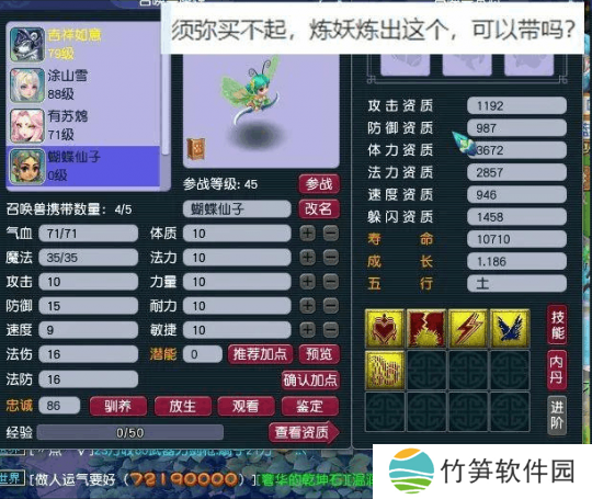 上面这位玩家表示自己因为没钱买不起须弥,然后就自己合了。合出来的是一只拥有着高级魔之心和高级法术暴击的蝴蝶仙子,想知道这只蝴蝶仙子可不可以用呢?