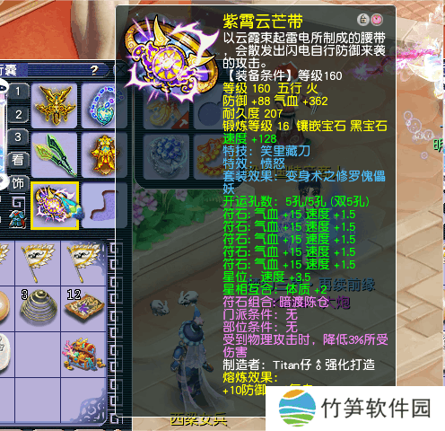 目前这号还差鞋子和佩饰,其它部位的装备非常豪华,女儿村该有的特技基本都有。