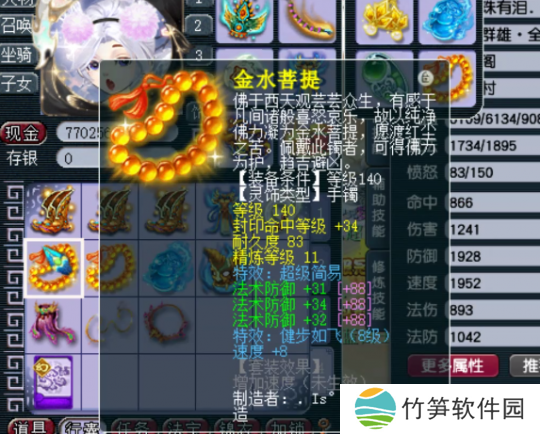140级主属性34封印,下排三法防97的超级简易手镯。