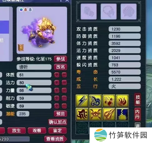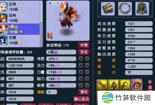 这是一组2技能双特殊谛听+9技能日游神的炼妖,老板追求极致的细节,给日游神打了4本小法和2本**。