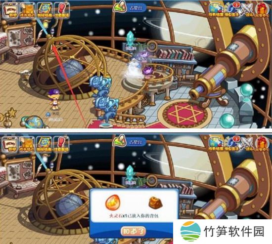 3、前往占星台,点击那束蓝光,按照提示完成任务,即可得到火灵石。