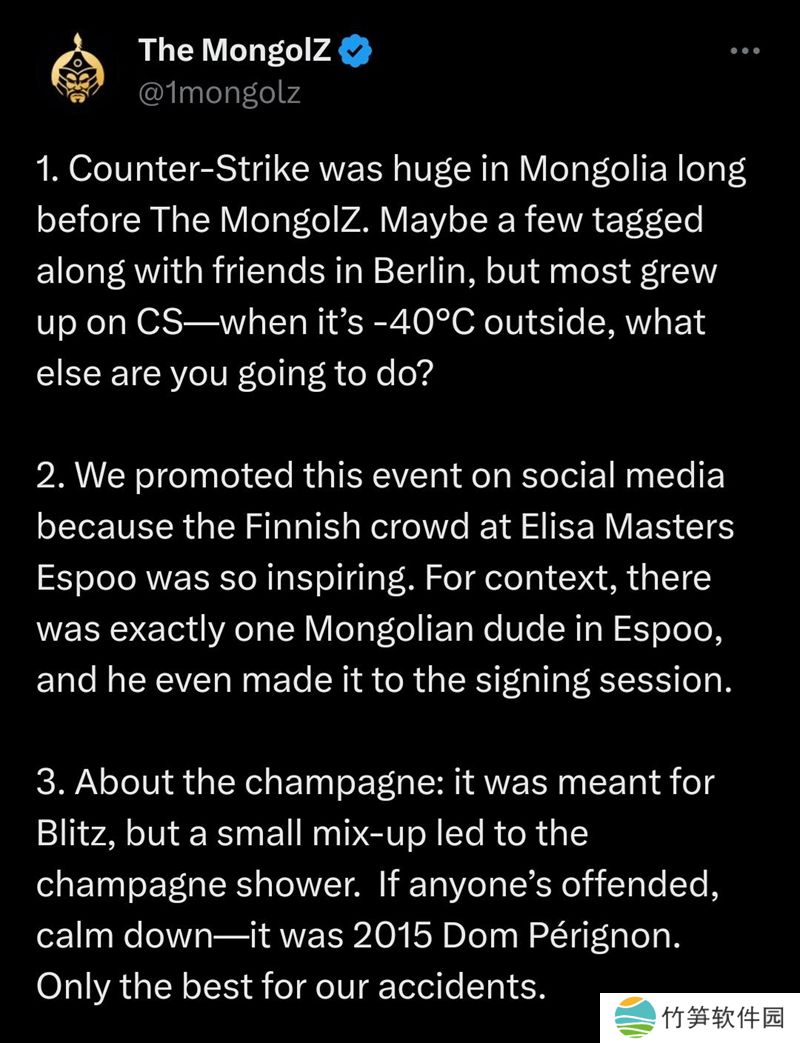 在前几天的TP 世锦赛上,The MongolZ在决赛中以3-1的**分力压HEROIC拿下了冠军。近日,The MongolZ在社媒上回忆了赛后情况并分享了一些趣事: