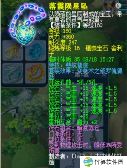 160级慈航普度项链,基础灵力264,镶嵌16锻舍利子。咱就说,有这条高灵“法系”项链在手,咱偶尔客串个魔方寸那还不是手拿把掐~