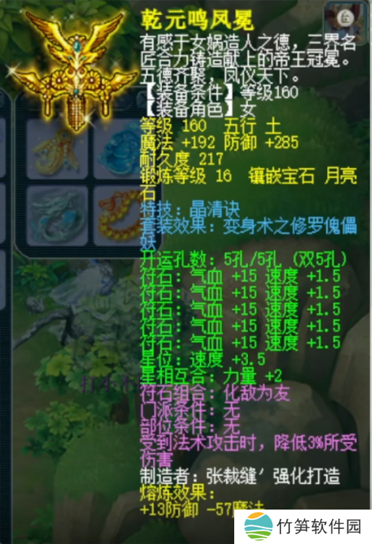 第二件,160级晶清诀女头,基础防御106,16锻月亮石。