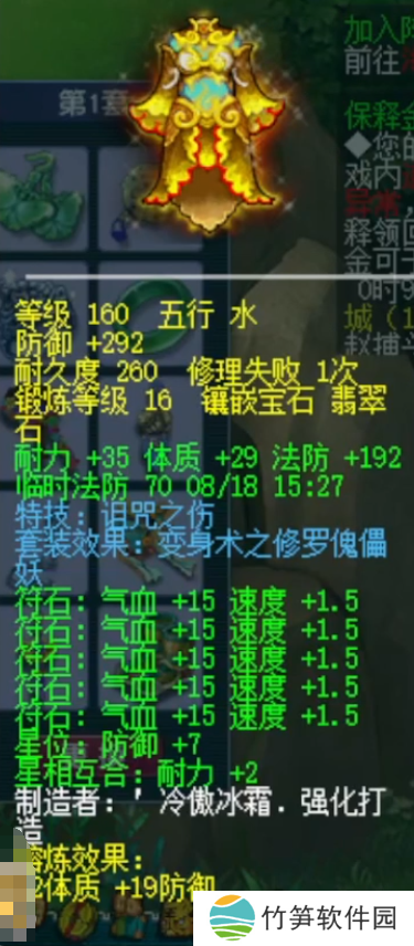 160级诅咒之伤女衣,基础防御311,双加体耐66,镶嵌16锻翡翠石。