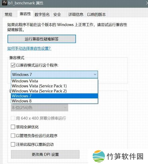 2、点击勾选【兼容性】,把兼容模式改成win7即可。