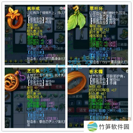 戒指和耳饰下排都是双治疗一速度,配饰下排双法防一气血,手镯下排双法防一防御,全部打了6锻星辉石,特效6级回春之术!