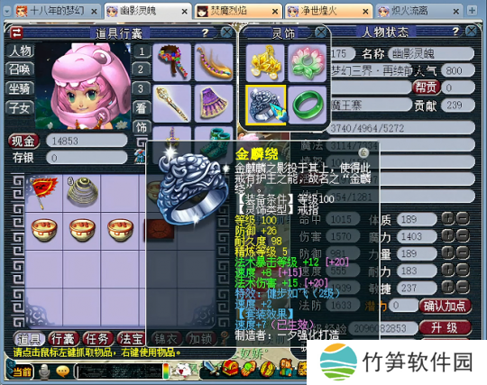 这组号从卖掉到买回的两年半,除了人物技能比以前高以外,其他地方都没有变化,组合从当初的无底洞加四女魃,变成了现在的盘丝加四魔王。