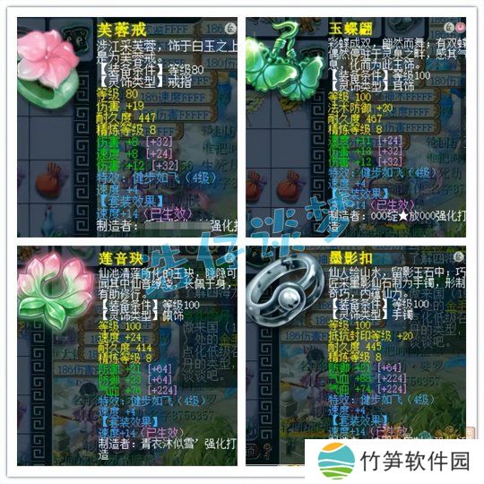 戒指和耳饰下排都是双伤害一速度,配饰下排双防御一气血,手镯下排双气血一防御,全部打了8锻星辉石,特效4级健步如飞!
