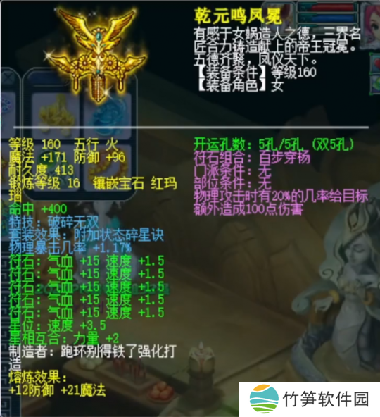 基础防御108,镶嵌16锻红玛瑙的破碎帽子,附加特性1.17%物理暴击几率(特性物理暴击几率的上限是1.2%)。