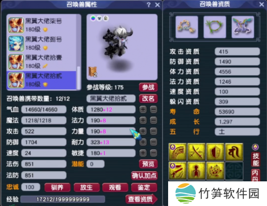 最后是三攻队伍必备的龟速宝宝。这只童子有着近15000气血,1700防御,属性非常华丽。