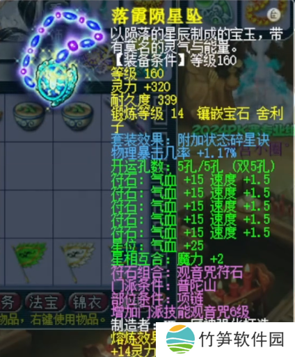 基础灵力250,镶嵌14锻舍利子的项链,附加特性1.17%物理暴击几率。
