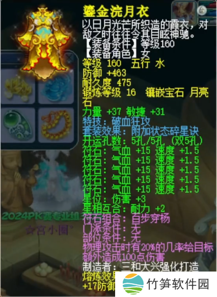 衣服选择镶嵌月亮石而不是更适合仙族的光芒石,则是为了在实战中具备一定的物理抗性(理由在武器部分说过了哦~)。