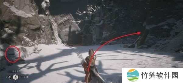 1、从第三回【小西天-苦海-戒语廊】土地庙出发,沿路往前走可以看到雪地里有个蒲团。