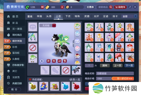 如果你的女角色较多,且想要个性化的定制,猪队长建议采用“烟柳柔云”头饰、“泪眼青蛙”上衣和“疾风战马”祥瑞。这套搭配不仅突出一个“绿”字,还拥有较快的施法对话,非常适合多固伤玩家使用。