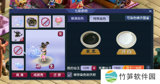 本次双11活动中,梦幻西游破天荒的推出了武器染色“88折”活动。其染色类别不仅限量锦衣的月白、墨黑色,可以对武器装饰进行染色。如果你成就点足够高的话,还可以对自身武器进行染色!
