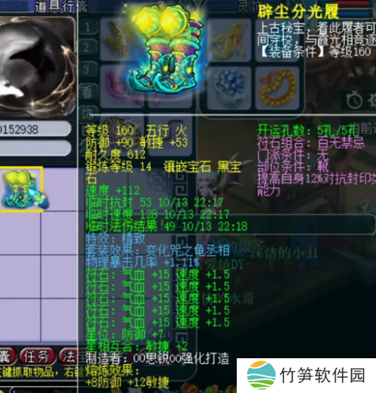 雪山拍手怪每天更新一点点,硬件提升一大步。他给精致物暴几率1.11%的鞋子打上14锻黑宝石,九黎城就是主打“爆爆爆”。