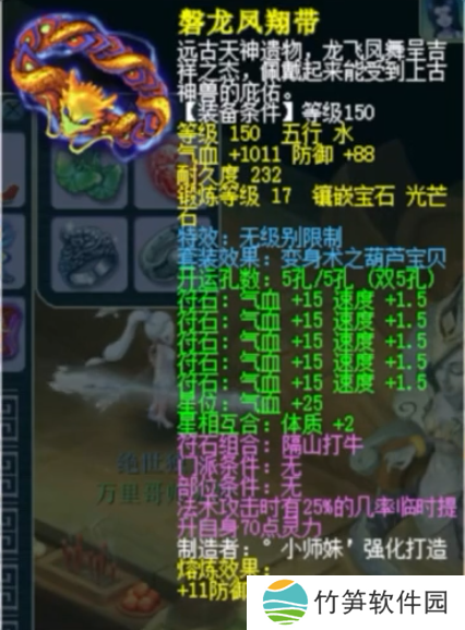 基础防御99,基础气血372的150级无级别腰带,镶嵌17锻光芒石。
