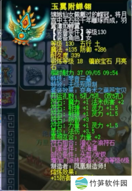 镶嵌18锻月亮石,综合防御高达301的130级无级别琴音三叠女头。
