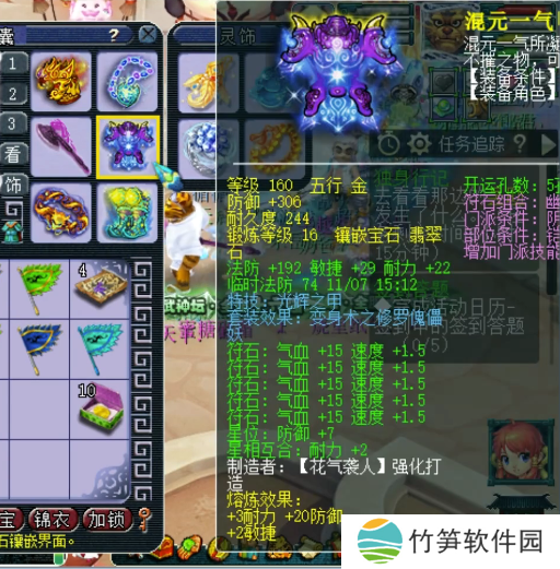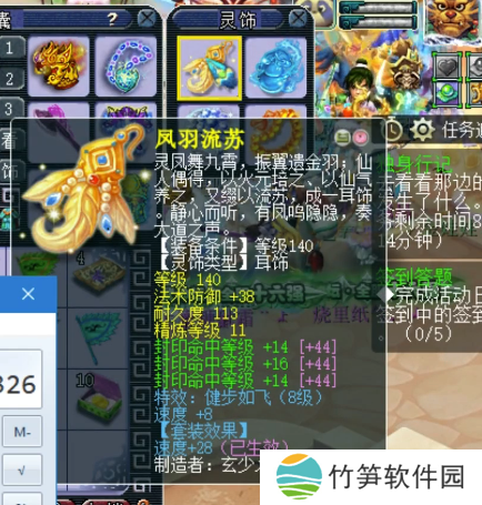 140级耳饰,主属性法防,下排3封印,带8级健步如飞。