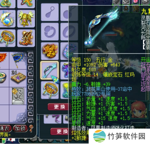 150级武器,14锻红玛瑙,总伤1007,熔炼后敏捷+41,耐力-6。