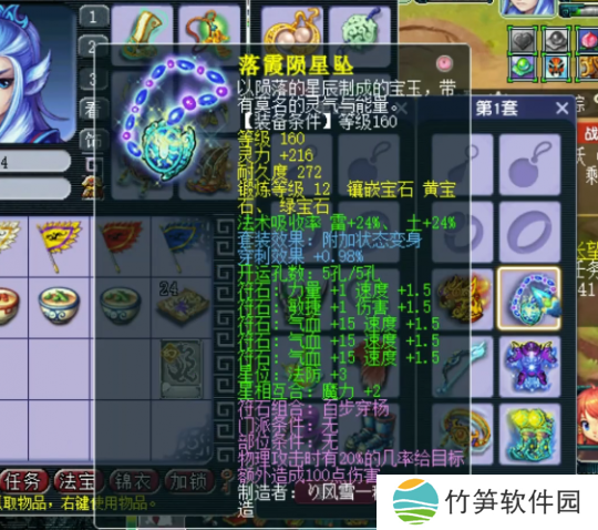 160级变身项链,附加穿刺效果+0.98%,12锻吸收宝石混打,灵力+216。