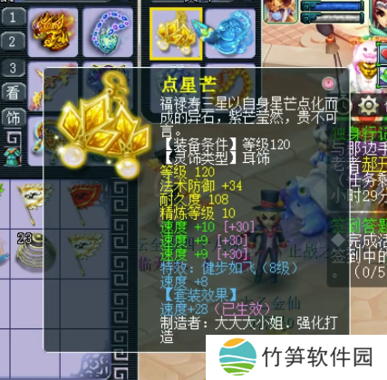 120级耳饰,主属性法防,下排3速度,带8级健步如飞。