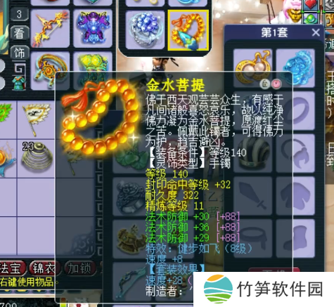 140级佩饰,主属性速度,下排2法防1气血,带8级健步如飞。