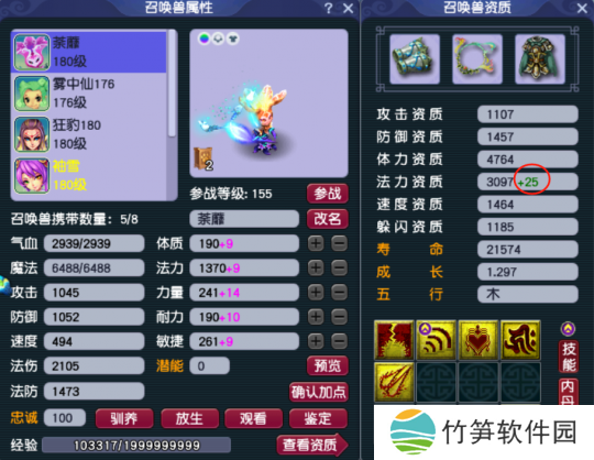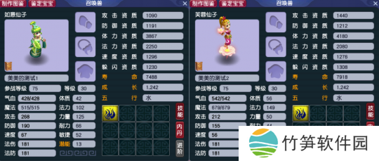 其中如意仙子攻资1090,芙蓉仙子攻资1440。并且,小美通过加点的让两只测试宝宝的面板法伤保持一致。
