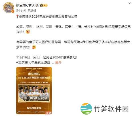虎扑11月14日讯 狼队发布线下影院观赛城市:成都/青岛/上海在列,没有重庆