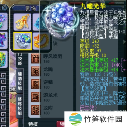 140级戒指,主属性防御,下排1法伤2法暴,带7级163。