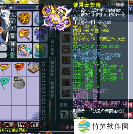 160级起死回生腰带,附加法暴伤害+4.65%,熔炼后防御+106,气血+990。