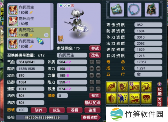 满符面板属性,气血10828,防御2187,速度594,法伤285。
