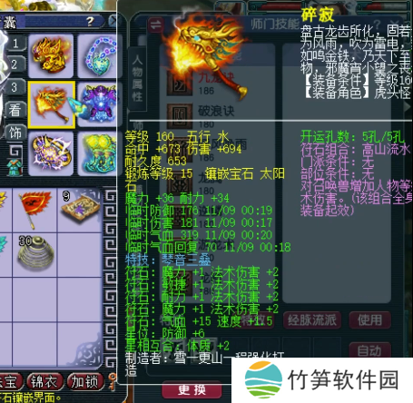 160级琴音三叠武器,15锻太阳石,伤害+694,魔力+36,耐力+34。