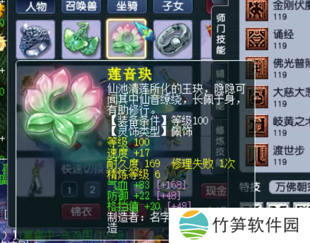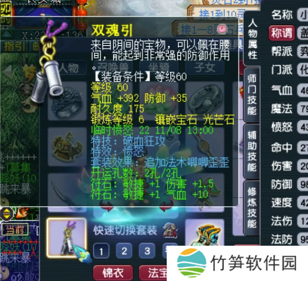 100级佩饰,主属性速度,下排气血、防御、格挡。