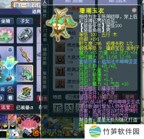 100级男衣,9锻舍利子,熔炼后防御+202,魔力+13,力量+13。