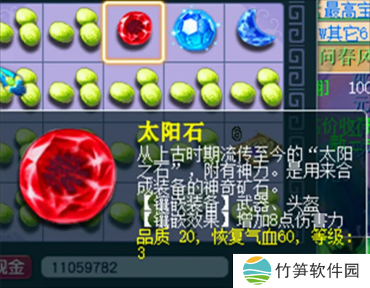 这位玩家应该是遇到bug了,卡出来了一颗20品质的太阳石。看这个功效应该是某种低级药品的效果。通常只要重新登录游戏就能恢复正常。