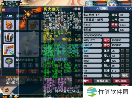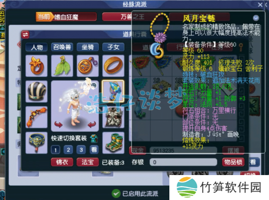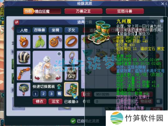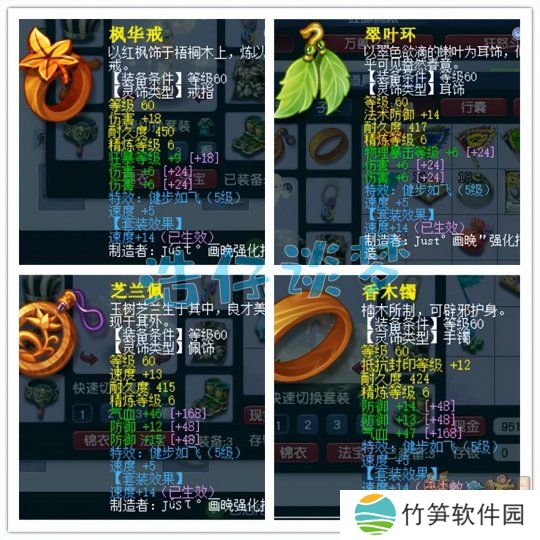 戒指下排双伤害一狂暴,耳饰下排双伤害一物暴,配饰和手镯下排都是双防御一气血,全部打了6锻星辉石,特效5级健步如飞!