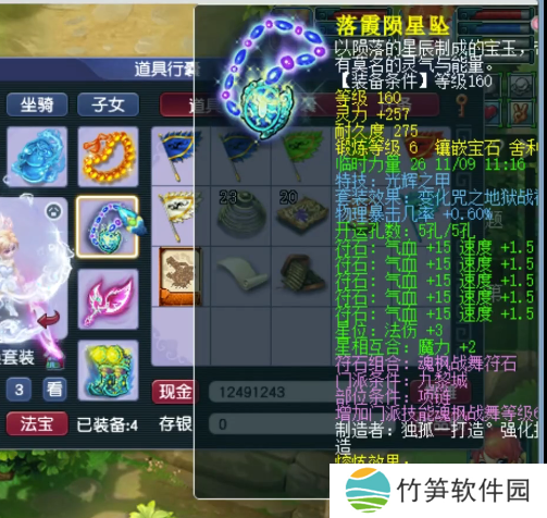 140级耳饰,主属性法防,下排2速度1伤害,带7级健步如飞。