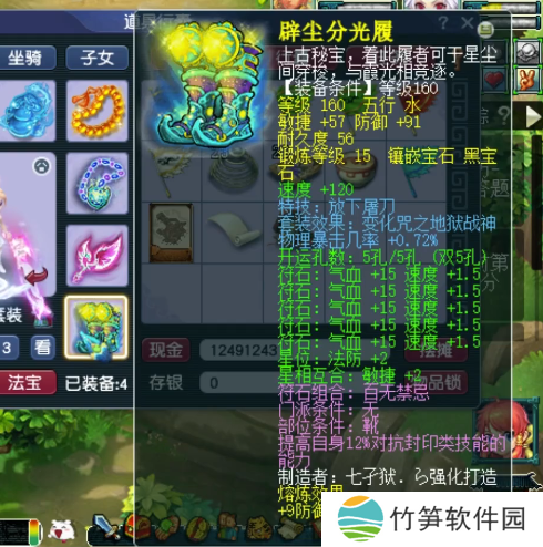 140级手镯,主属性抗封,下排2防御1气血,带7级健步如飞。