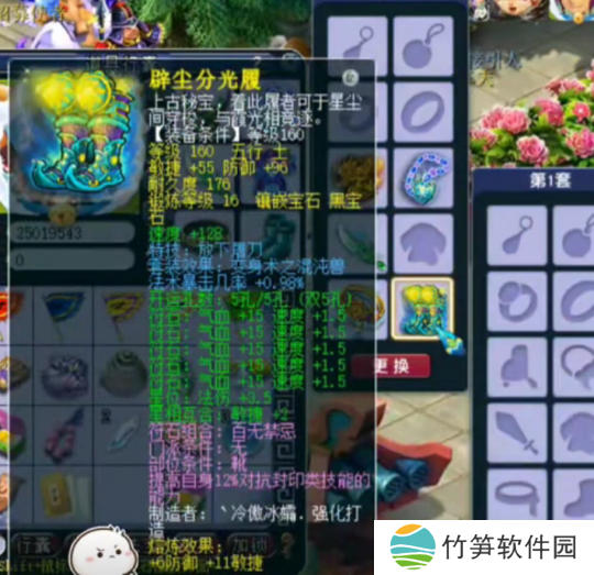 160放下法宝几率鞋子,蓝字一级棒,但法系很少带这个特技了。
