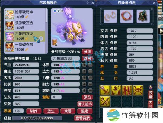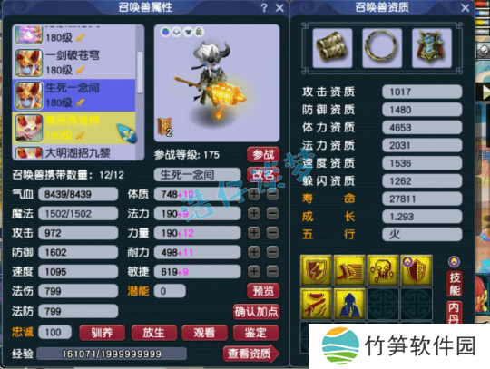 9技能净台壁垒魔化童子,成长资质都还不错,套装可以随便携带!