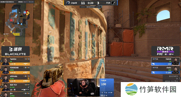 FURIA选图,Liquid先做进攻方,手枪局便秘进攻,最后五人上A小平推包点,赢下胜利后Liquid拿到2-0开局。