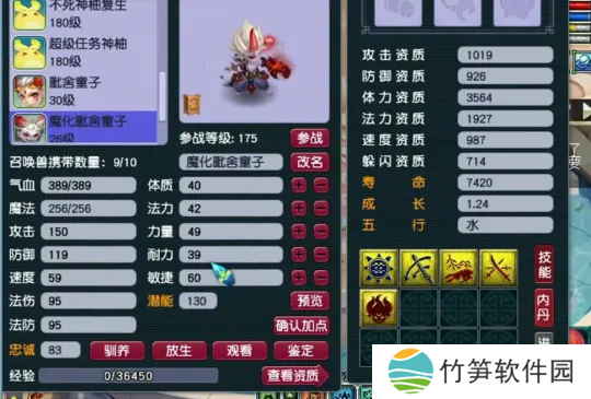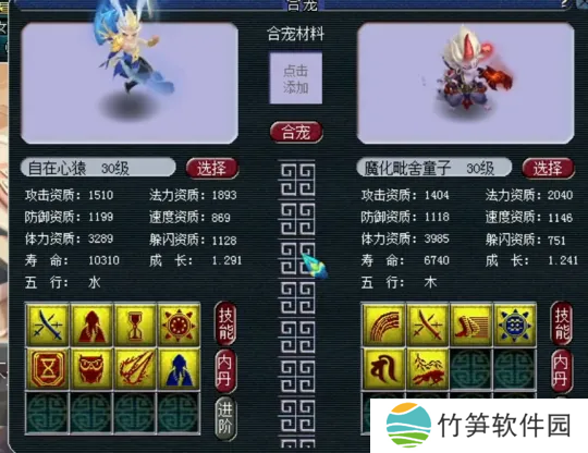 这是一组8技能心猿+6技能净台魔化童子的炼妖,老板想要炸出翻页净台心猿胚子,看看能否实现?