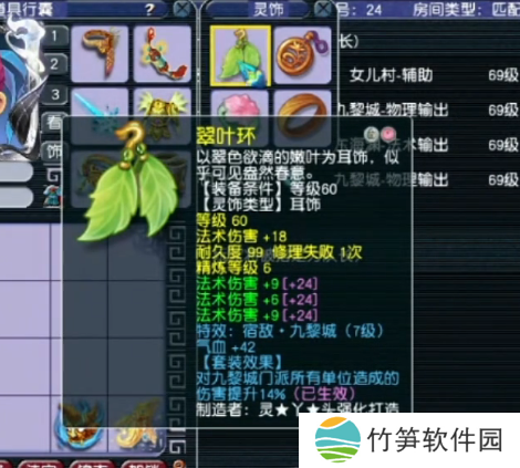 60级耳饰,主属性法伤,下排3法伤,带7级宿敌·九黎城。