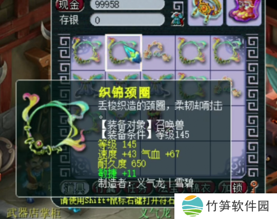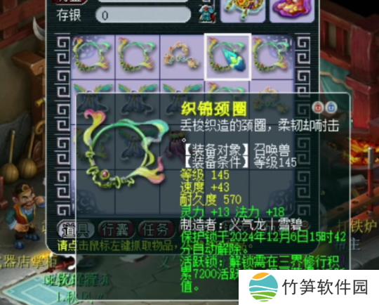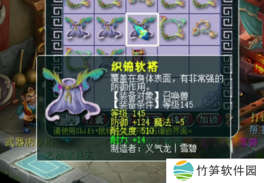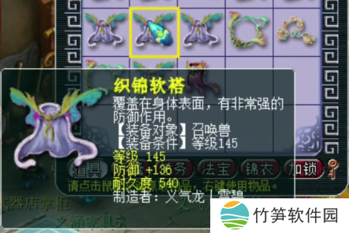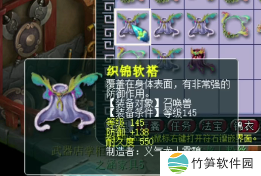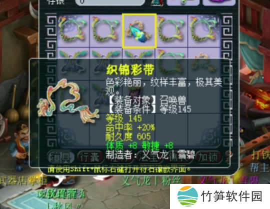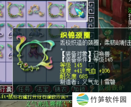 第四件145级宠装,灵力+13,法力+18,灵法双加,这件不错,不过数值加的不多。