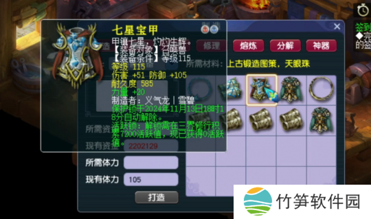 最后一件是115级宠装,伤害+51,力量+20,综合属性达到了71,这件宠装的属性还算可以,勉强能回点本。总的来说,今天的宠环打造并没有让玩家赚到钱。