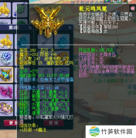 160级女头,附加物暴几率+1.14%,15锻红玛瑙,熔炼后防御+97。