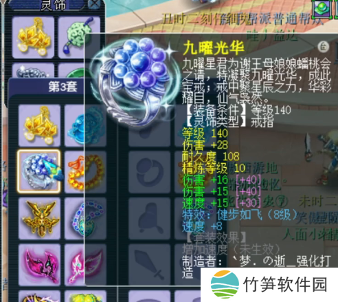 140级戒指,主属性伤害,下排2伤害1速度,带8级健步如飞。