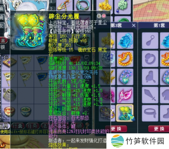 160级鞋子,附加物暴几率+1.08%,15锻黑宝石,敏捷+55,防御+95。